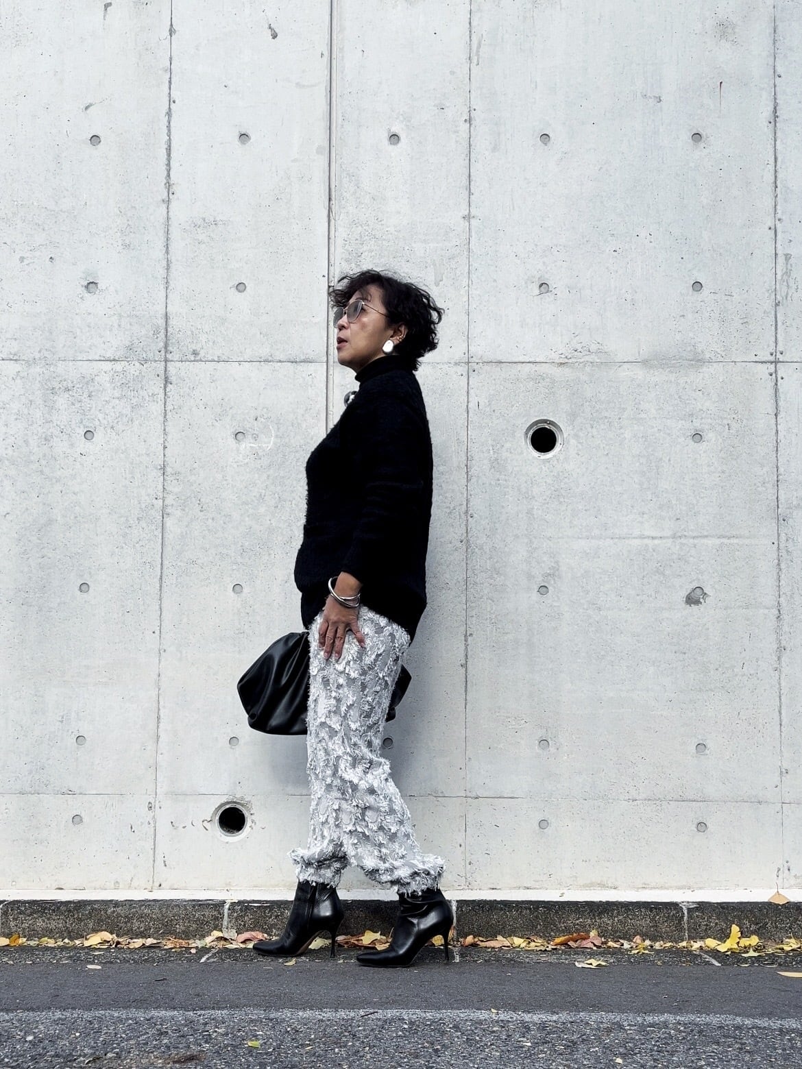 全体的にたっぷりとしたシルエットで、モードかつエレガントに仕上げました。